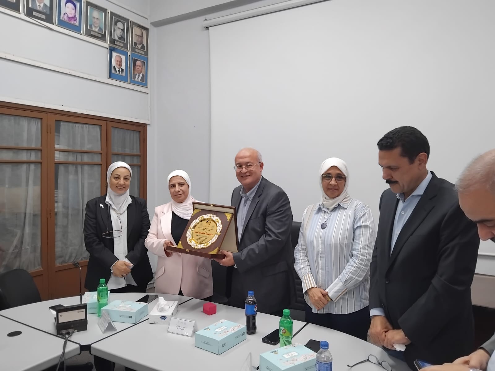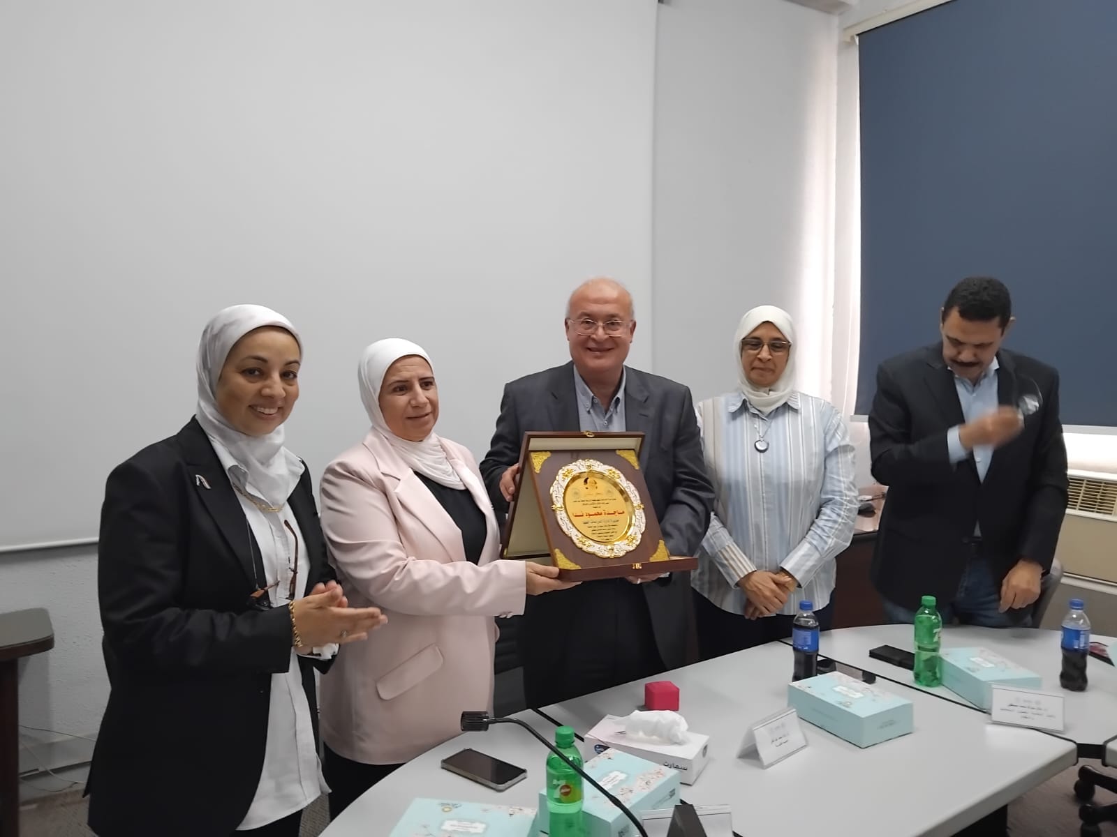 حيث قام السيد ا. د/ ولاء عبدالغني السيد عميد الكلية بتكريمها وتسليمها درع التكريم والهدايا التذكارية بحضور السادة الوكلاء ا. د/ منى محمد سعيد زايد وكيل الكلية لشئون الدراسات العليا والبحوث