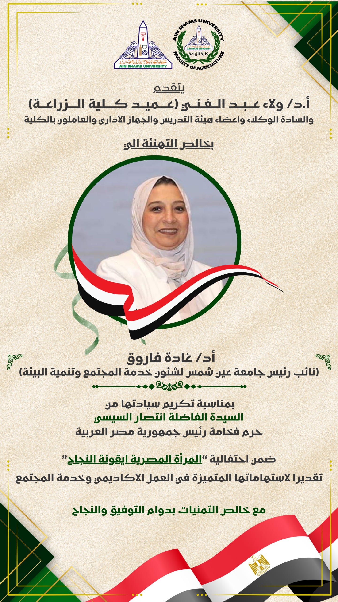 تهنئة الأستاذ الدكتور ولاء عبد الغني للأستاذ الدكتور غادة فاروق