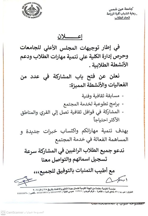 فتح باب المشاركة فى مجموعة فعاليات ومسابقات بالكلية