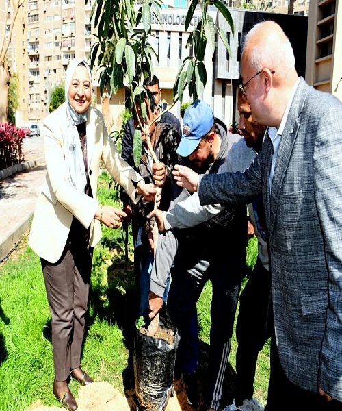 فى إطار مشاركة جامعة عين شمس بفاعليات المبادرة الرئاسية "100 مليون شجرة" شهدت الأستاذة الدكتورة غادة فاروق نائب رئيس الجامعة لشئون خدمة المجتمع وتنمية البيئة بالجامعة ، زراعة أشجار مثمرة بالحرم الرئيسى لجامعة عين شمس ، بحضور الأستاذ الدكتور ولاء عبد الغنى عميد كلية الزراعة والأستاذة الدكتورة امل مرسى وكلية كلية العلوم